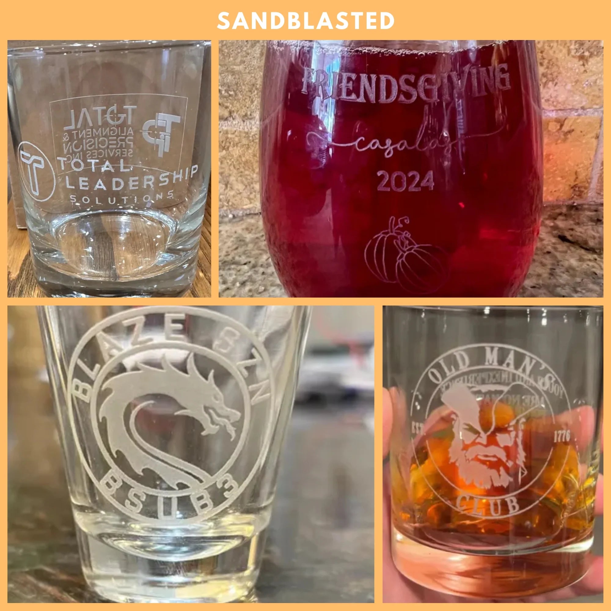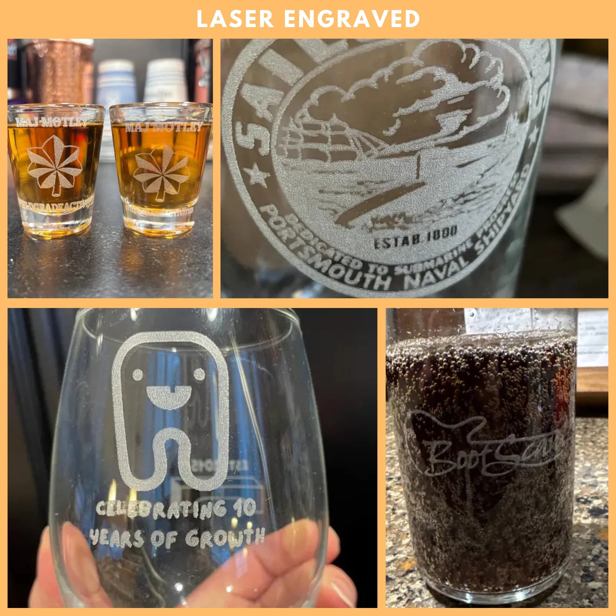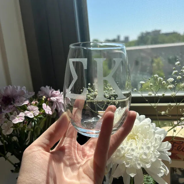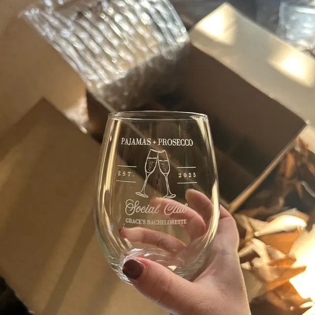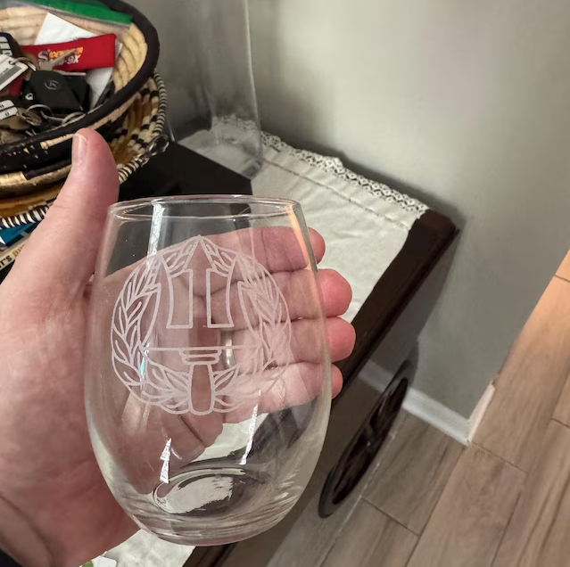While vinyl screenprints give you a wide array of colors to choose from, they are semi-permanent stickers that quickly wear out. Laser etching actually cuts into the glass and is a much higher quality, elegant, and long-lasting method of personalizing glassware.