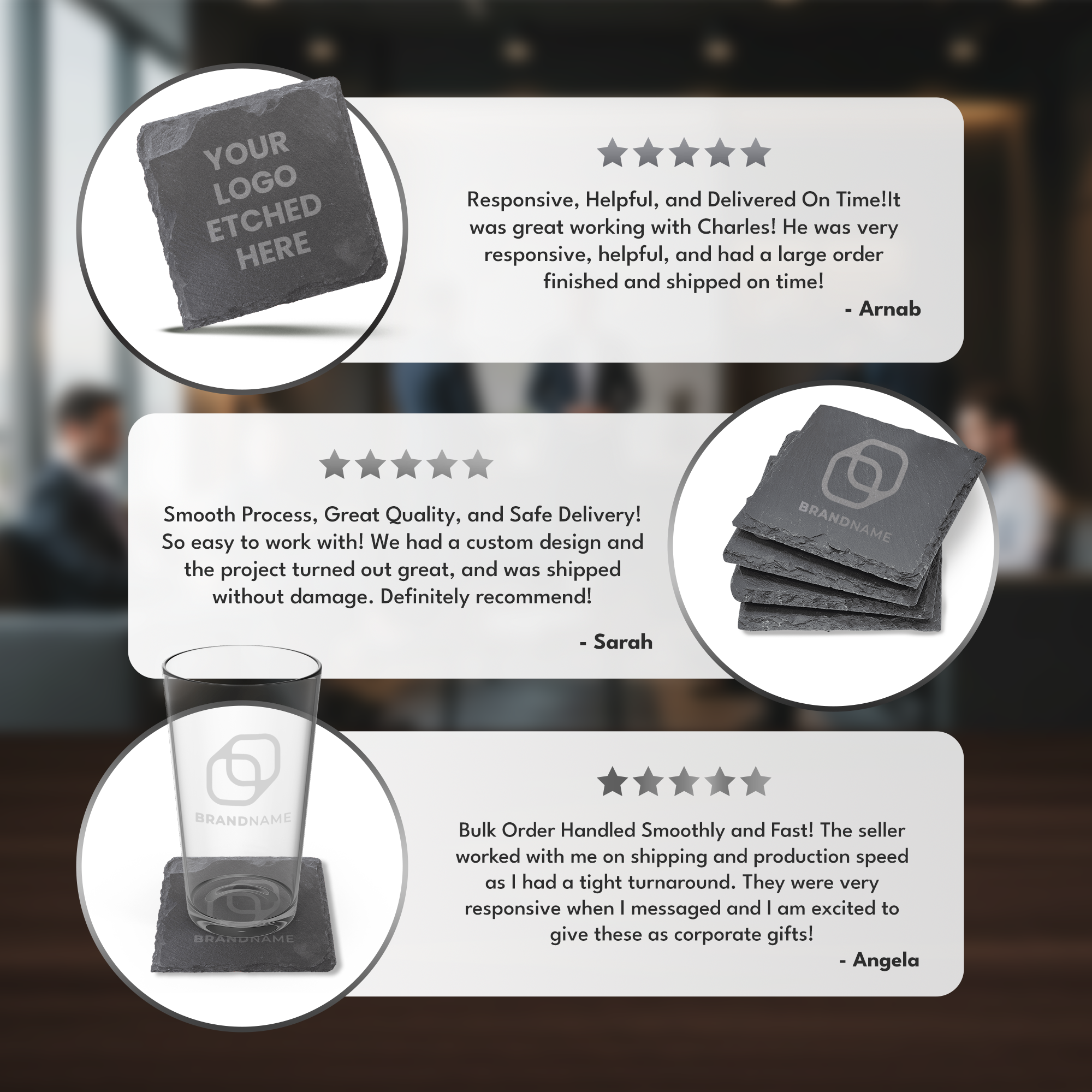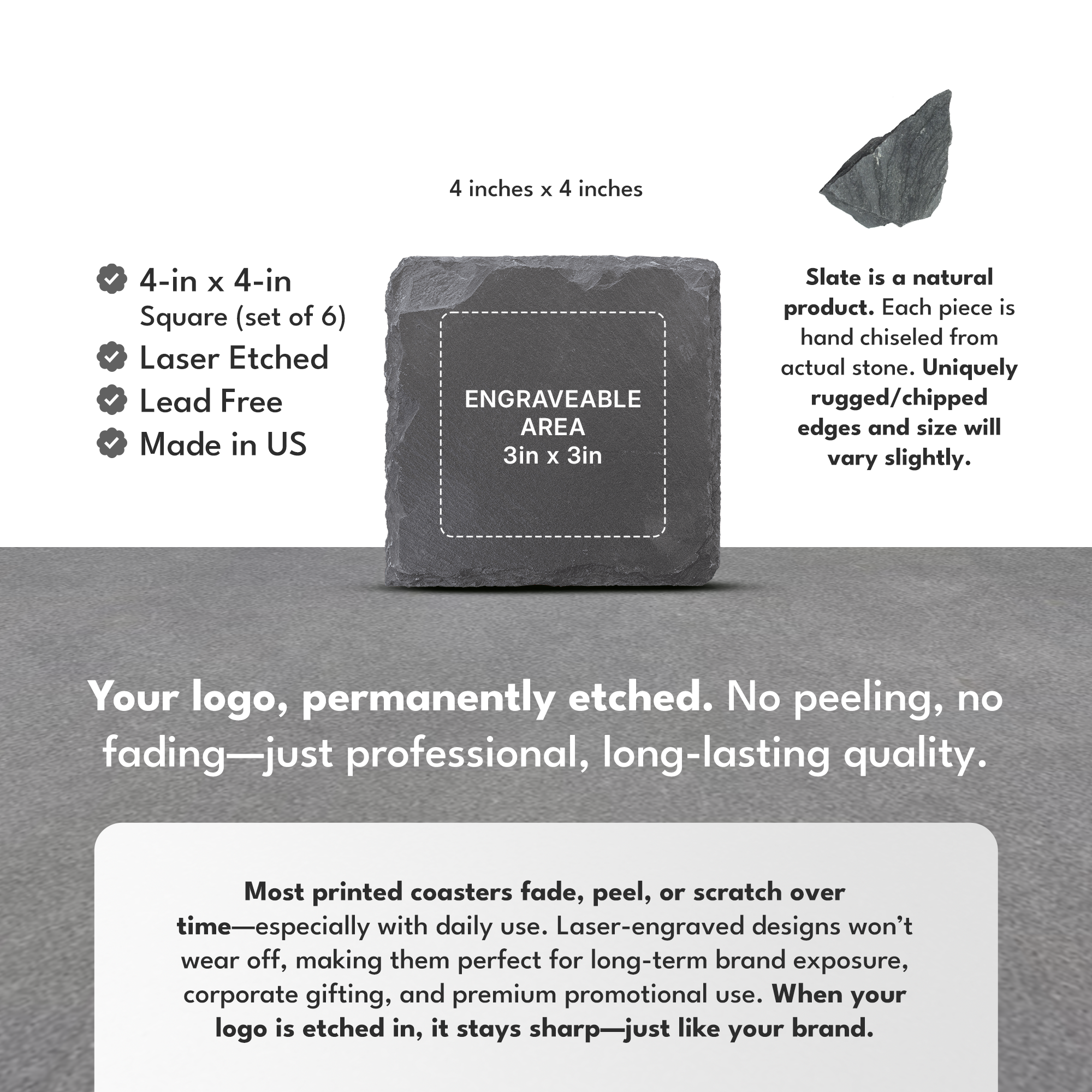 4" x 4" Square Slate Coaster Set-6 Piece with Exclusive Bulk Wholesale Pricing