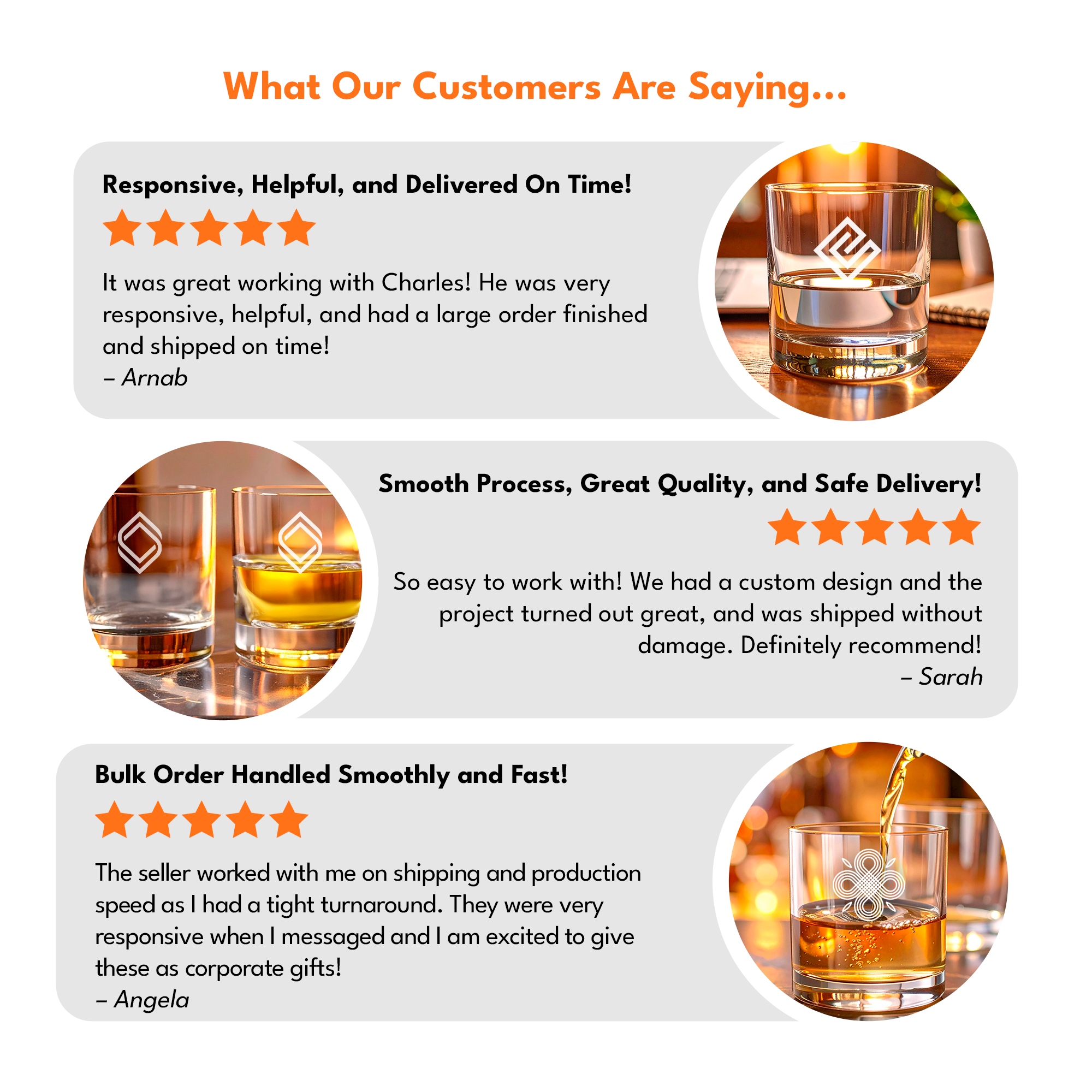 We specialize in B2B corporate gifting and understand what matters: flawless quality, on-time delivery, and presentation that speaks volumes. Whether you're ordering for a company milestone, holiday appreciation, or client gifts at scale — we make it easy to impress with custom glassware that reflects your brand’s quality and values.